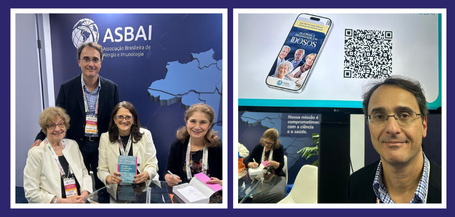 Lançamentos de livros – Quem esteve no Congresso Brasileiro de Alergia e Imunologia ainda pode participar do lançamentos do livro Alergia e Imunologia no Idoso e da edição de atualização do Guia de Imunização em Asma, Alergia e Imunodeficiências ASBAI / SBIm, celebrando os 10 anos de parceria entre ASBAI e SBIm, desde 2015, ocasião em que foi lançada a primeira edição deste Guia.Além dos livros, a ASBAI ainda lançou o e-book Alergia e Imunidade em Idosos e a Cartilha Inteligência Artificial para o Alergista e Imunologista.