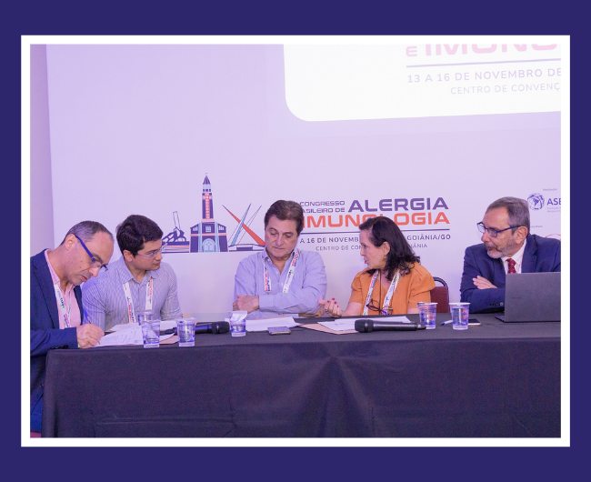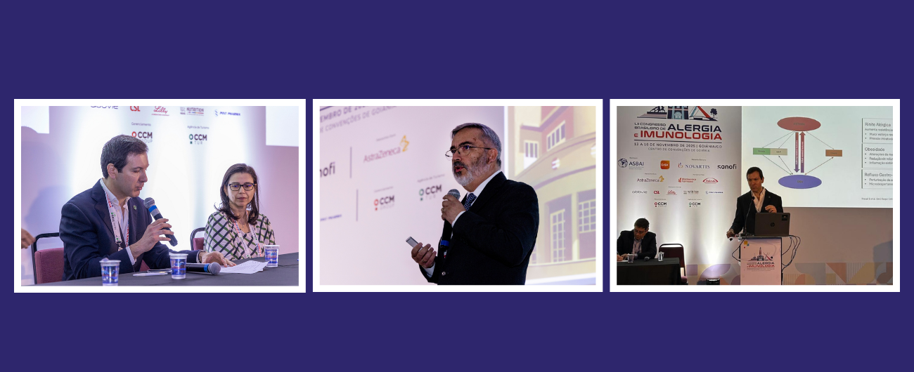 A Dra. Asli Akkor, da EAACI, ministrou aula sobre abordagens práticas de diagnóstico em hipersensibilidade medicamentosa tardia e sobre angioedema hereditário. O Dr. IbonEguiluz, diretor científico da EAACI, falou sobre avanços recentes na rinite alérgica local e o uso de biomarcadores para imunobiológicos em alergias cutâneas.